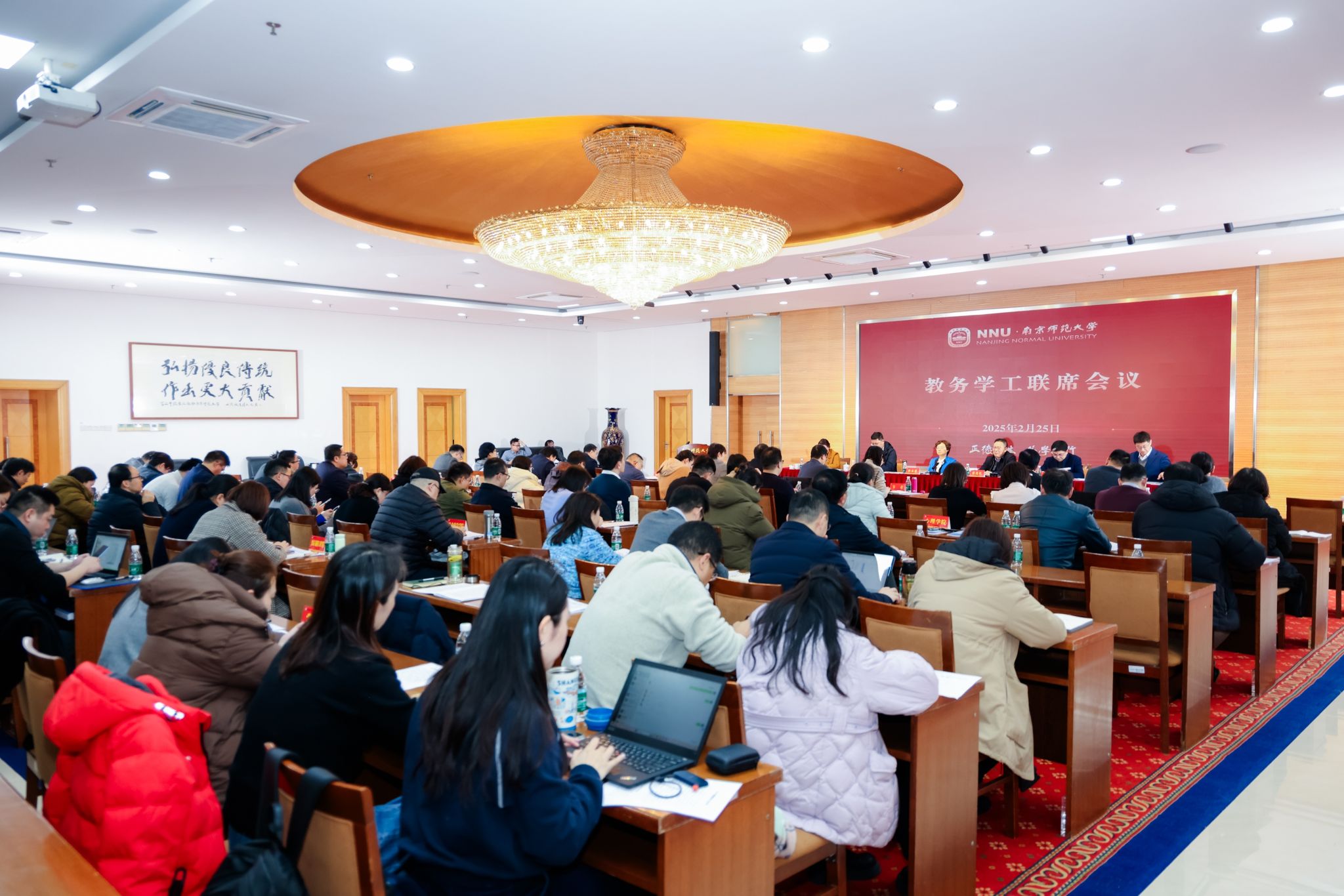 2月25日,我校在仙林校区芳菲楼召开2025年教务学工联席会议,总结2024年本科人才培养取得成绩,部署2025年各项重点工作,增进教务、学工、团委协同,推动本科人才培养高质量发展。校党委副书记孙友莲,校党委常委、副校长张连红出席会议。教务处、学工处(部)、校团委负责人,各二级学院党委副书记、分管教学工作副院长参加此次活动。孙友莲主持会议。