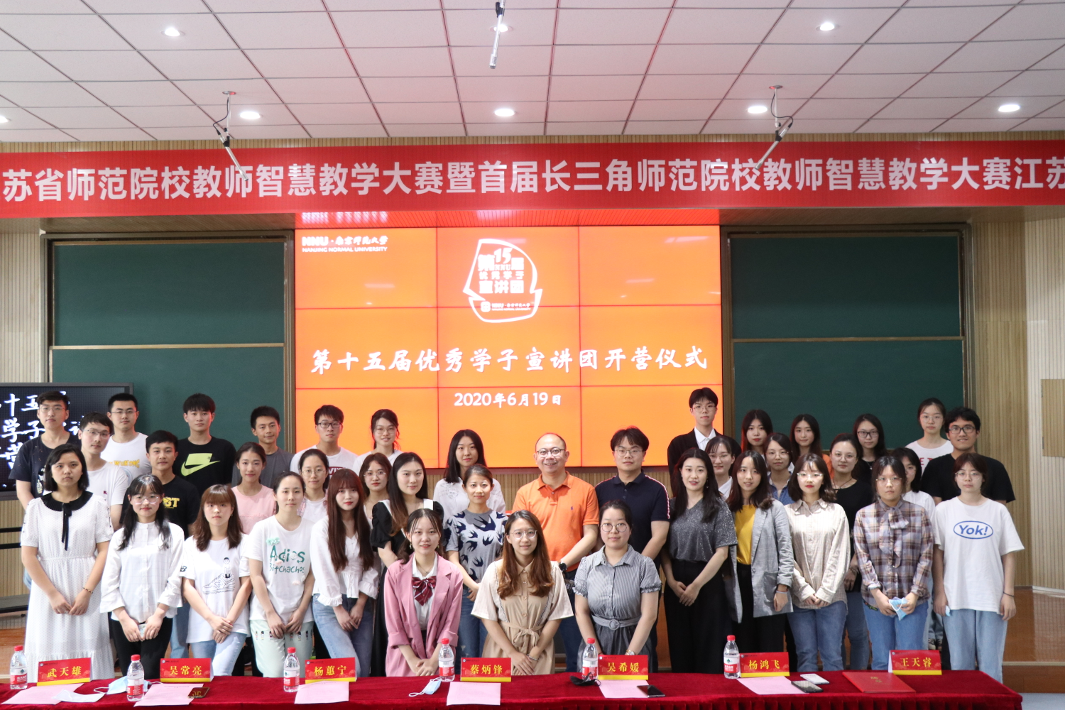 6月19日下午,南京师范大学第十五届优秀学子宣讲团开营仪式在学明楼举行,学工处相关负责老师、第十二届优秀学子宣讲团代表、第十四届优秀学子宣讲团代表以及第十五届优宣团训练营成员共同参加本次活动,开营仪式由教师教育学院辅导员、第十五届优宣团指导老师王天睿主持。
