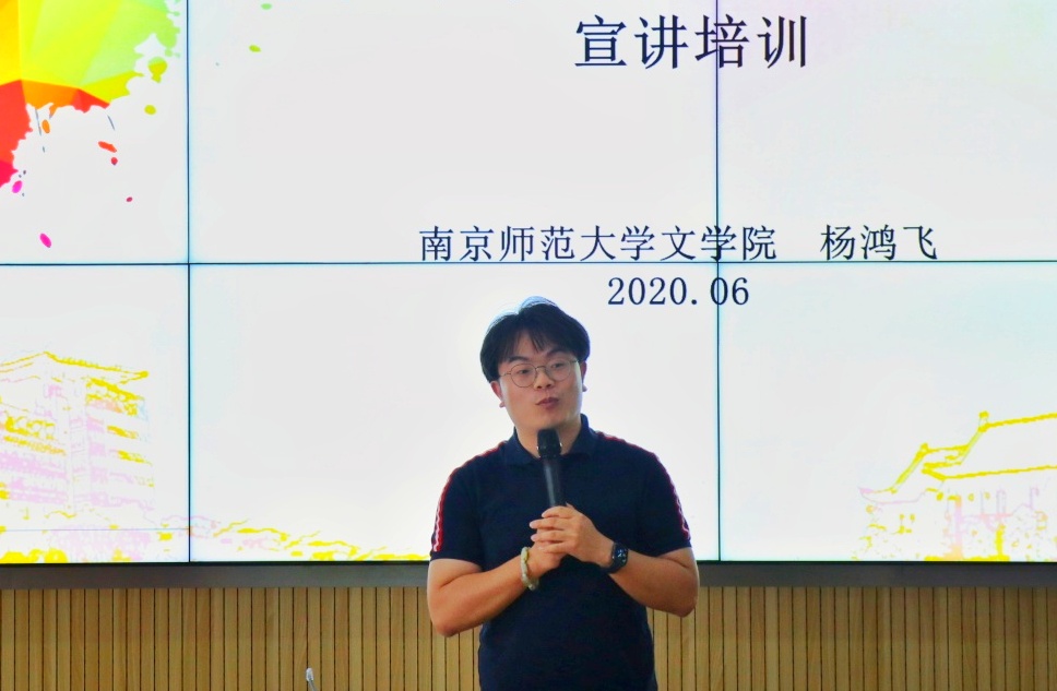 接下来,南京师范大学文学院辅导员、第十二届优宣学子杨鸿飞分享宣讲经验。杨鸿飞老师选取了多篇历届优宣团成员的宣讲稿,着重分享了题材的选择、故事的展开、叙述的方式等宣讲艺术,介绍了罗列数据、由小及大、亮明身份、波澜转折等宣讲技巧,同时,他分享了自己当年宣讲的珍贵视频,引发了在场学子的深深共鸣。