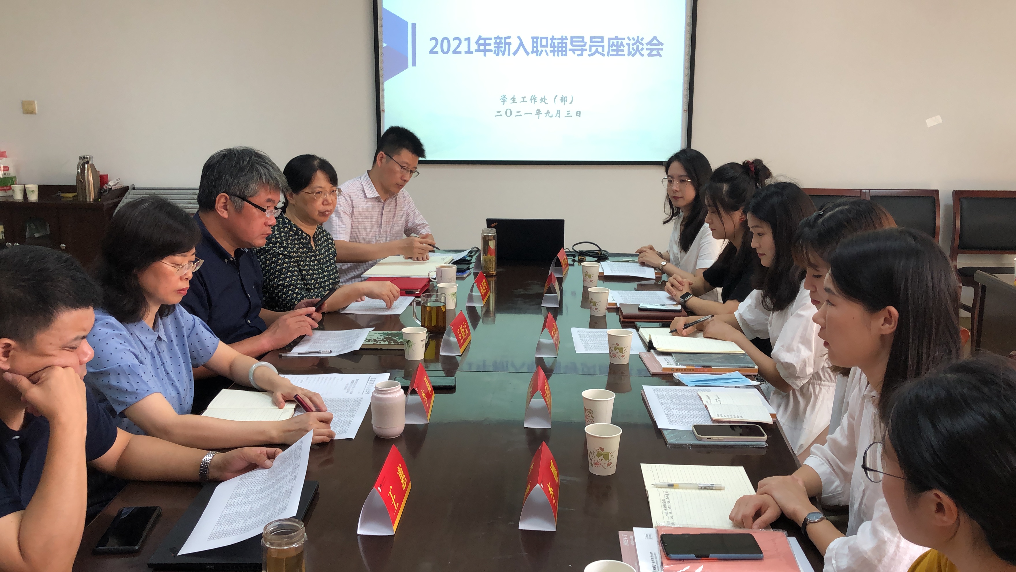 为进一步加强辅导员队伍建设,切实提高新入职辅导员育人能力,9月3日上午, 南京师范大学2021年新入职辅导员座谈会在仙林校区笃学楼二楼会议室举行。党委学工部部长、学工处处长李莉,人武部部长王新文以及学工处全体处领导出席座谈会。