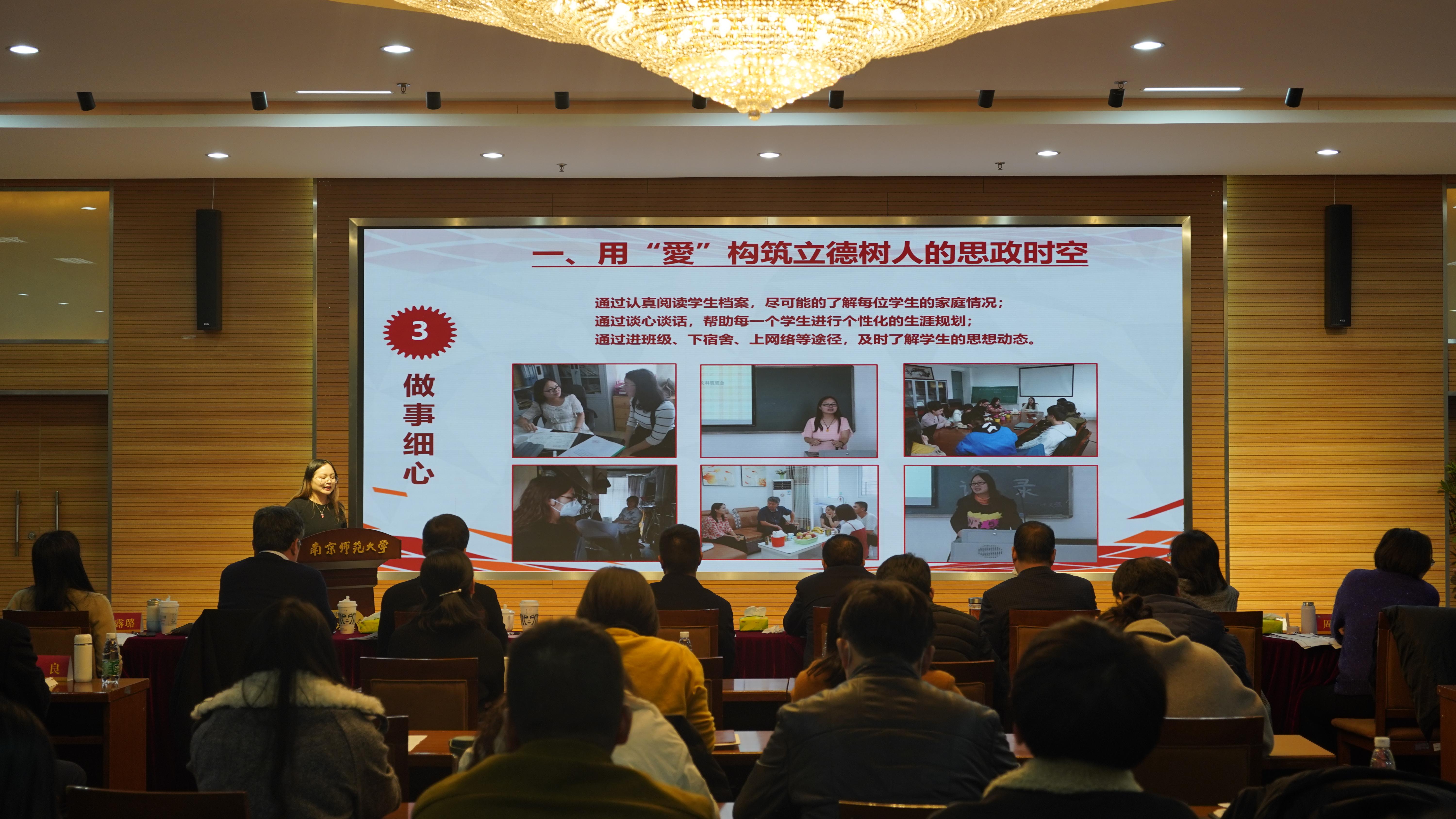 辅导员标兵候选人的精彩答辩,不仅展现出南师辅导员队伍的高水平风采,更勾勒出无数默默奉献的南师学工人的身影。多年来,我校始终坚持立德树人根本任务,坚持打造辅导员队伍“固本强基”工程,不断引导辅导员加强理论素养、深化实践成效、提升职业能力,推动辅导员队伍职业化、专业化、专家化建设。征途漫漫,惟有奋斗。相信全校辅导员在学校党委的领导下,在各级党政组织的关心和指导下,必将创造出更优异的成绩,为学校“十四五”建设,为迎接一百二十年校庆增光添彩!
